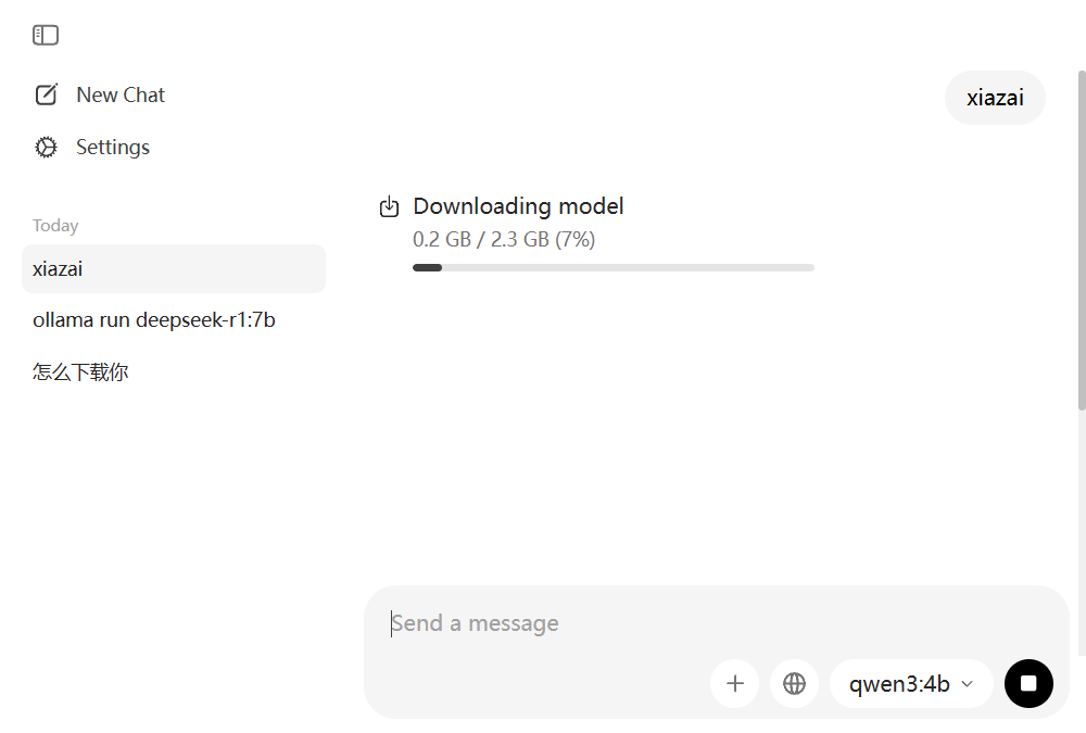 切换成Qwen3:4b,随便输入一段对话就会开启下载
